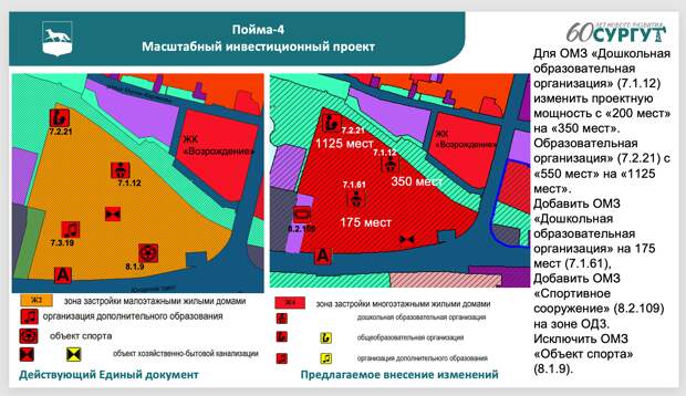 При этом наблюдатели связывают отказ властей от пакетного включения зон КРТ в генплан с громким скандалом, разразившимся вокруг конкурса по выбору инвестора для крупнейшей такой зоны — «Ядро центра Сургута». Федеральная антимонопольная служба (ФАС) отменила торги, выявив в документации грубые нарушения. В частности, в обязанности потенциального застройщика незаконно включили благоустройство набережной реки Саймы — территории, не входящей в границы самого проекта КРТ. Это требование, противоречащее Градостроительному кодексу, было ключевым публичным аргументом администрации для снижения социальной напряжённости, так как обещало горожанам компенсацию в виде новой общественной зоны за счёт инвестора. Фиаско этого подхода, выявленное надзорным органом, по мнению экспертов, заставило городские власти отказаться от столь же спорного пакетного изменения генплана. Претензии жителей и аргументы власти: спор об этажности «Поймы-4» Второй блок утверждённых поправок, вызвавший наибольший резонанс у горожан, касался повышения этажности в уже переданных застройщикам проектах. Речь идёт о квартале «Пойма-4» (компания «Брусника») и микрорайоне 50 (ДСК-1). Земля была передана этим компаниям в качестве компенсации за достройку проблемных объектов для дольщиков.Теперь же, по инициативе властей, предлагается изменить зоны этих участков с «малоэтажной и среднеэтажной жилой застройки» на «многоэтажную». В рамках тех же поправок предложено пропорционально увеличить мощность социальных объектов. В частности, по проекту «Пойма-4» предусмотрено расширение детского сада со 200 до 350 мест, школы с 550 до 1125 мест и строительство дополнительного сада на 175 мест. На публичных слушаниях жители прилегающих домов высказались категорически против таких изменений, указывая на отсутствие инфраструктуры и усугубление транспортных проблем. «Если такие изменения внесутся в градостроительные документы, то мы будем в судебном порядке обжаловать. Какая необходимость в этом? Там нет инфраструктуры. Обещают, что завтра она появится, но мы не сможем ею воспользоваться, жить там будет невозможно. У нас получится еще одно гетто, как на “Ауре”», — заявила на слушаниях одна из жительниц.